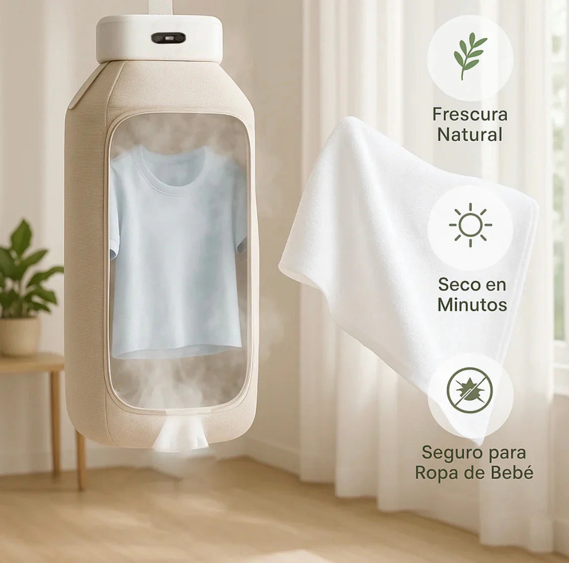 Coloca la ropa, enchufa el dispositivo y deja que el aire caliente circule de forma uniforme dentro de la funda, ayudando a que las prendas se sequen más rápido que al aire libre y sin depender del clima.